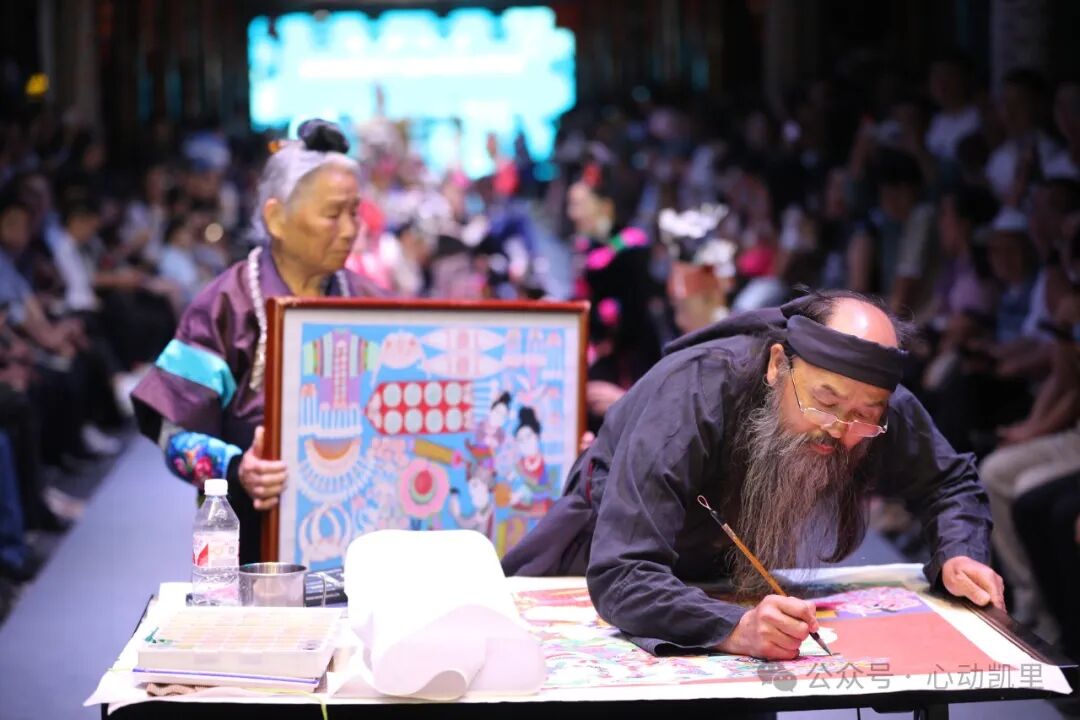 发布会现场,银饰的清脆声响与刺绣的绚丽色彩在“T台”上交织,当每一位文艺家身着民族服饰、手持特刊《指尖传奇》依次亮相,民族文化与时尚美学碰撞出耀眼的火花。国家级非遗传承人相关作品、银花绣妆系列作品的展示及高光返场赠书等环节,层层递进,高潮迭起。