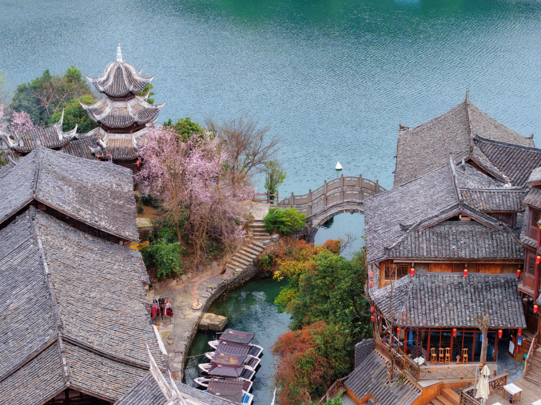 不仅有小桥流水,青石板路,还有桃花烂漫