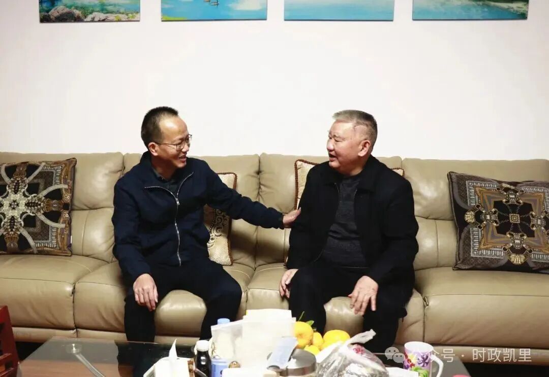 在退休老干部潘志刚家中,谭夔与他促膝交谈,详细了解他的身体生活情况,感谢他为凯里市经济社会发展作出的积极贡献。希望他继续关心关注凯里市经济社会发展,多传宝贵经验,聚焦城区道路交通安全,针对医院、学校路段及人流量较大的道路交叉口,面向社会了解征集建设天桥社情民意等民生关切,多献务实之策。
