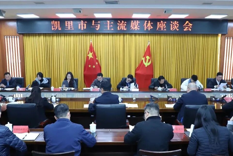 12月1日,州委常委、市委书记谭夔主持召开凯里市与主流媒体座谈会,邀请人民日报社贵州分社、新华社贵州分社、中央广播电视总台贵州总站、经济日报贵州记者站等14家中央和省、州媒体单位负责人齐聚凯里,总结宣传工作经验,聚焦凯里市新闻报道策划、讲好凯里故事,征集主流媒体经验做法、意见建议,共同推动凯里市新闻宣传工作再上新台阶,为展现贵州新风采凯里新篇章营造良好氛围。市领导陆红、刘鹏、彭诗美参加。