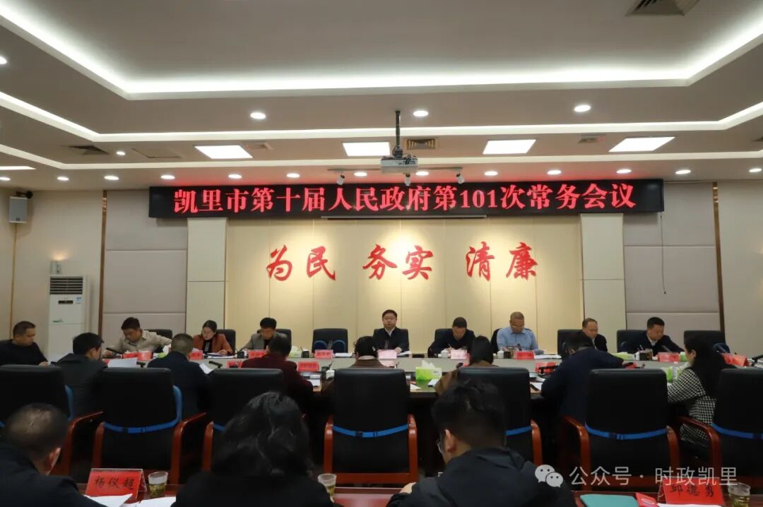 11月23日,市委副书记、市长杨波主持召开凯里市第十届人民政府第101次常务会议,传达学习中央和省、州近期有关会议和文件精神,讨论我市贯彻落实意见;研究《市文体广电旅游局关于审定〈凯里市旅游产业化体制机制改革实施方案(送审稿)〉的请示》《市综合行政执法局关于审批〈凯里市金泉巷道路提升改造项目实施方案(送审稿)〉的请示》《市财政局关于审定〈凯里市人民政府关于2024年凯里市财政预算调整方案(草案)的报告(送审稿)〉的请示》等,并安排部署相关工作。