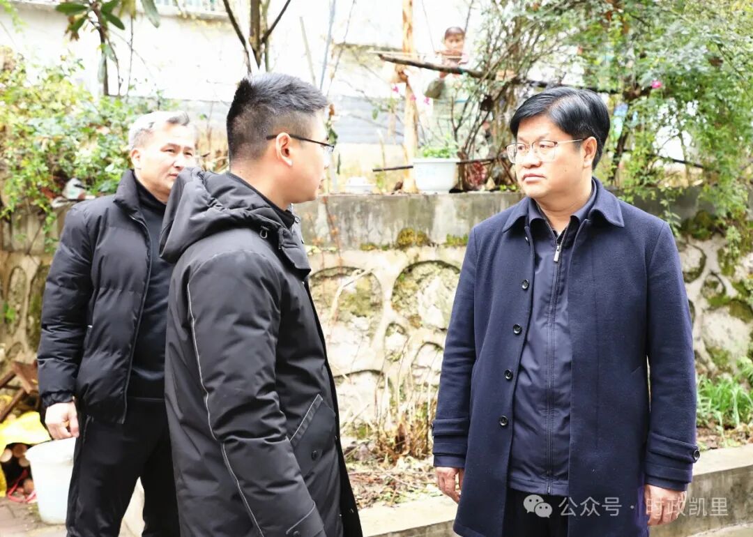 在开怀街道龙井村,谭夔与相关部门负责人及街道、村负责人深入交流,详细了解低温雨雪天气应对工作落实情况、消防应急救援队伍建设情况、群众消防安全意识和消防自救能力提升工作开展情况,实地察看村级消防设施建设情况、农村“水改”“电改”工作情况,并深入农户家中,了解群众生产生活、冬季用火用电情况等。