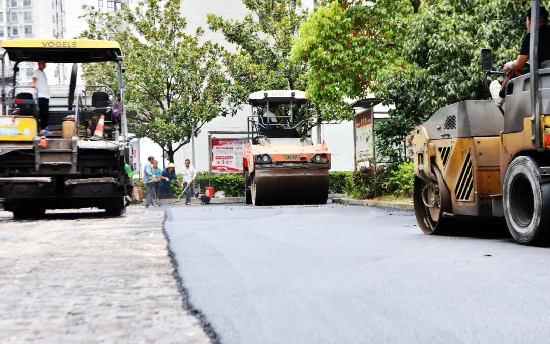 沥青路面铺装设备正在作业。(雷子德 摄)