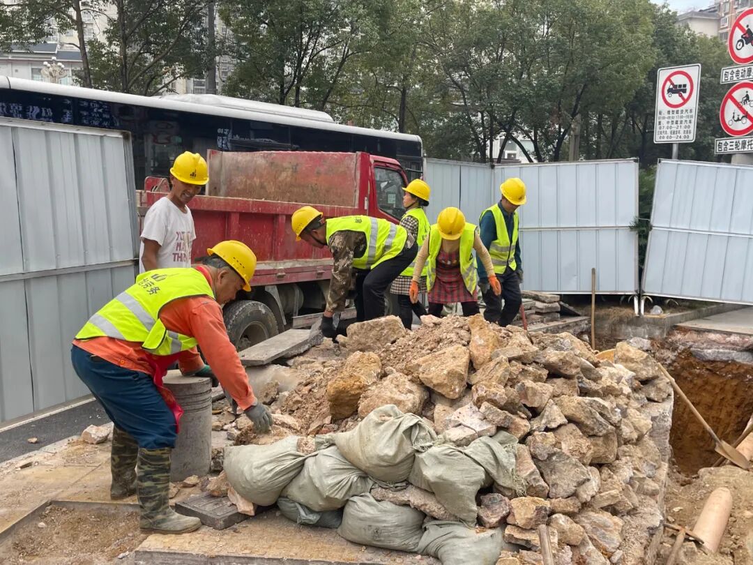 据悉,由于该区域地下管网复杂,为最大限度保护管线、确保施工精准,项目主要采用人工与小型机械配合的方式推进。