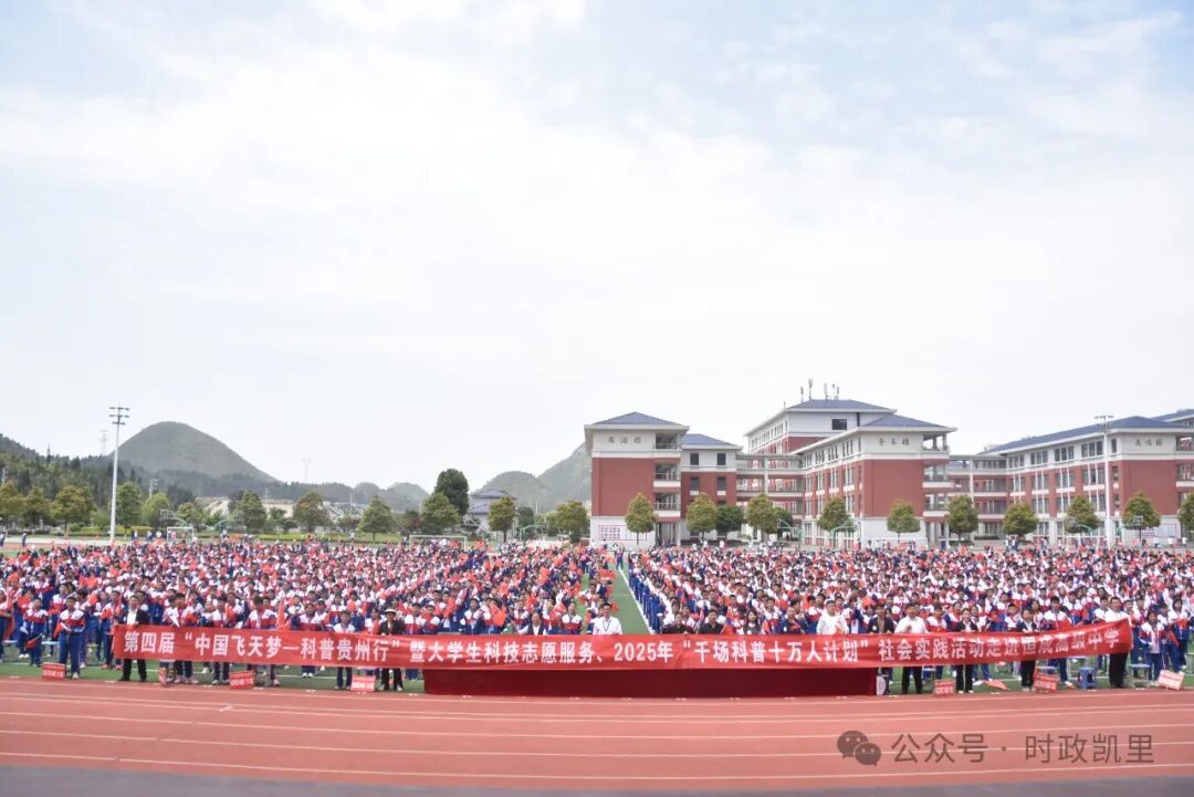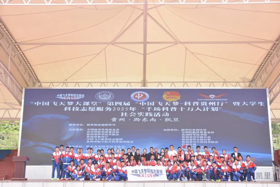 4月15日,第四届“中国飞天梦—科普贵州行”暨大学生科技科普志愿服务、2025年“千场科普十万人计划”社会实践活动走进凯里恒成中学。中国飞天梦科技志愿团贵州省总队社会工作部部长杨梅、宣文部部长刘婷出席活动并授课。州科协、市教育局、市科协、团市委、凯里恒成中学相关领导参加。