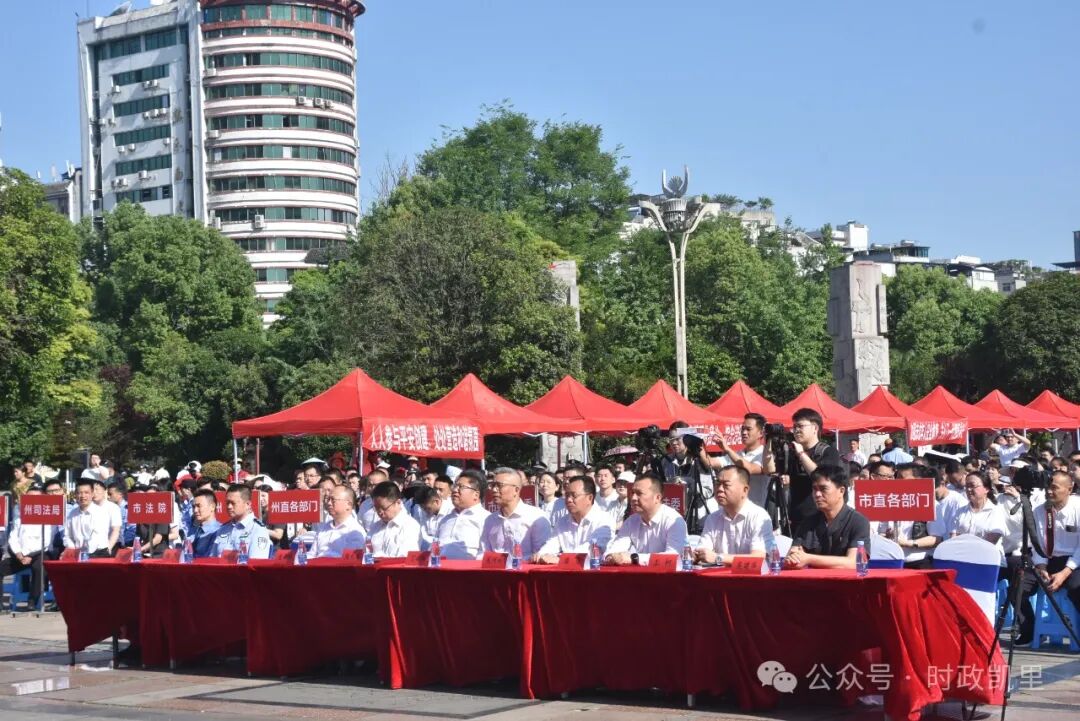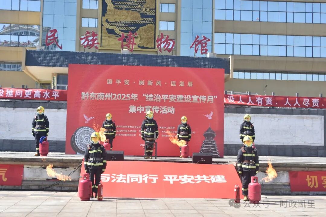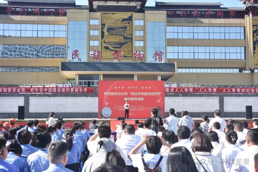 为营造平安黔东南建设良好氛围,5月13日,黔东南州、凯里市联合举行“综治平安建设宣传月”集中启动仪式暨法治宣传系列活动。州委常委、州委政法委书记周代军,州法院院长丁辉,州检察院检察长金亦贱,州委政法委副书记吴河松,州委政法委副书记潘勇,州司法局局长刘亦兵,州公安局常务副局长傅冬,市委副书记、市委政法委书记王柯,副市长、市公安局局长顾启明等出席活动,州、市直相关部门参加。
