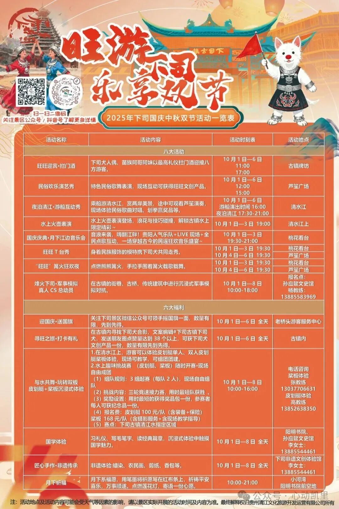 时间:10月1日至6日 游船演出时间(16:00) 夜泊清江(17:30-21:00)